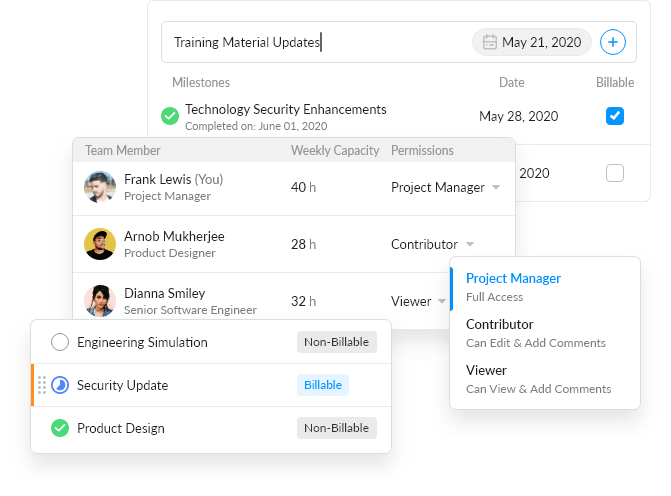 Log time spent on projects, mark time as billable or non-billable, know exactly how your team is spending time.