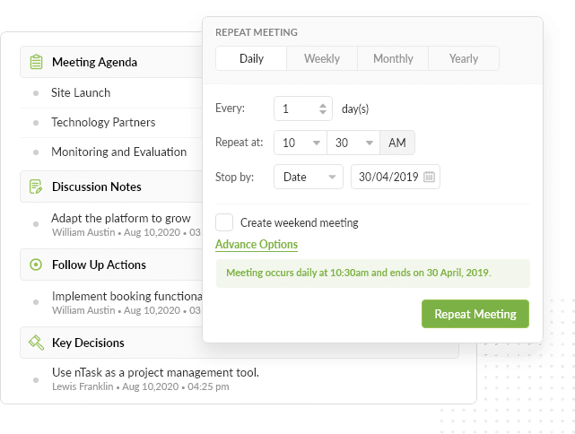 Schedule meetings across teams with the ability to review and edit minutes of the meeting before publishing. Integrate with your preferred meeting software like Teams, Google, Skype, etc