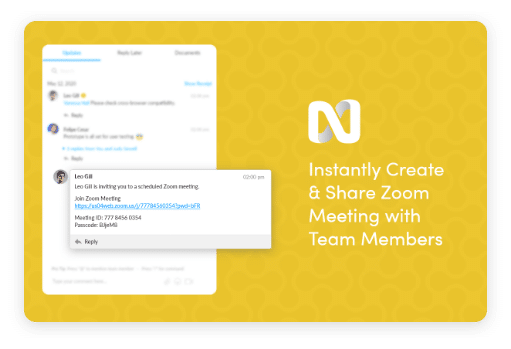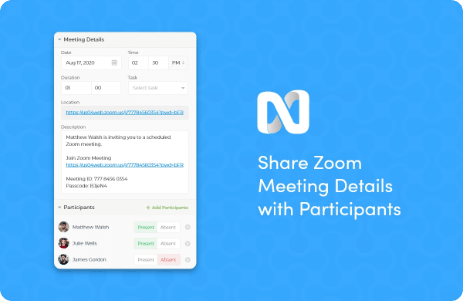Create and schedule a Zoom meeting in nTask, the meeting details will be shared automatically with the participants.
